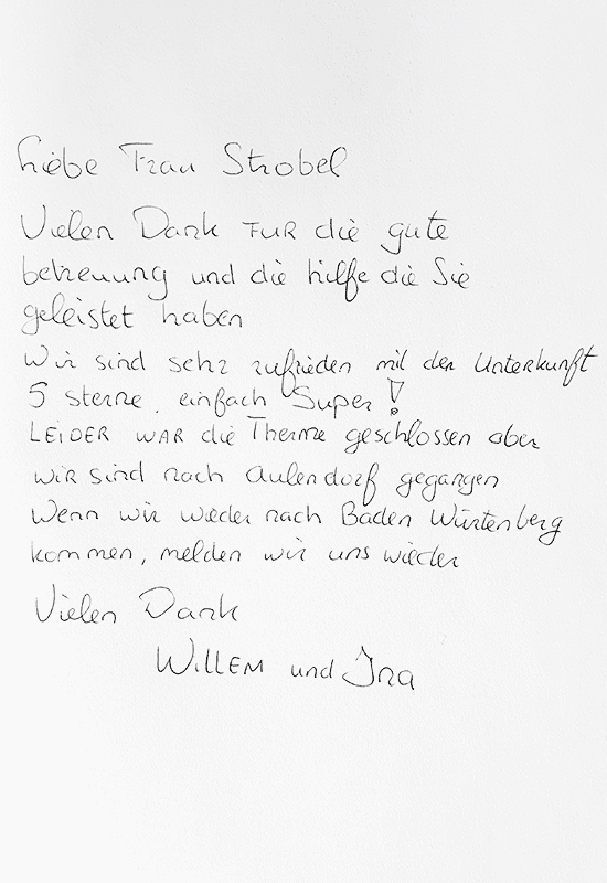 Auch die herzlichen Worte im Gästebuch zeigen die Zufriedenheit meiner Gäste.